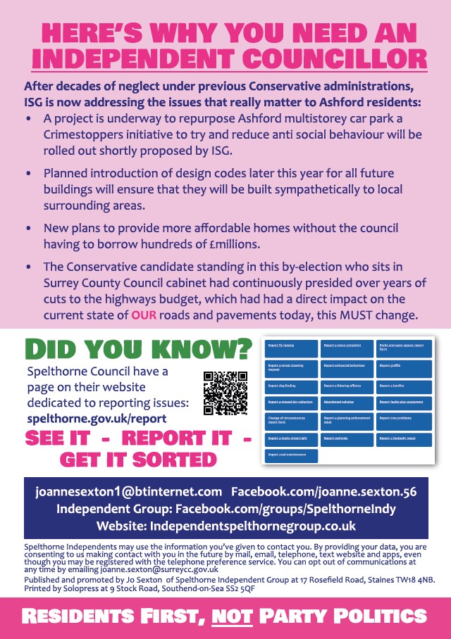 Adult Gaming Centres (AGC) Ashford Ashford East Ashford Town Bin Collection Budget Christmas Community Community Centre CommunityFirst Consultation Design Code Project Election Emergency Works Footway Funding Government Have Your Say High Street Highways ISG Mayor Pavements Planning PSPO Public Space Protection Order (PSPO) Recycling Recycling Bins Report Roads Road Safety Roadworks SeeItReportItSortIt Spelthorne Spelthorne Design Code Hub Spelthorne Parking Review Staines Support Surrey Survey Traffic Update VoteIndependent Youth Youthclub