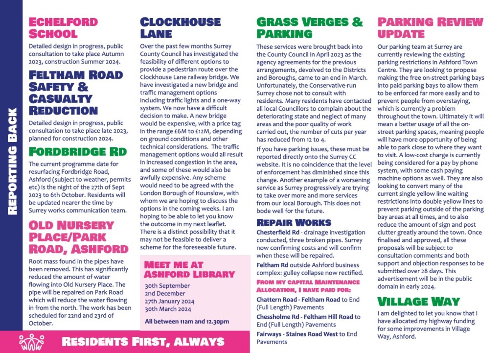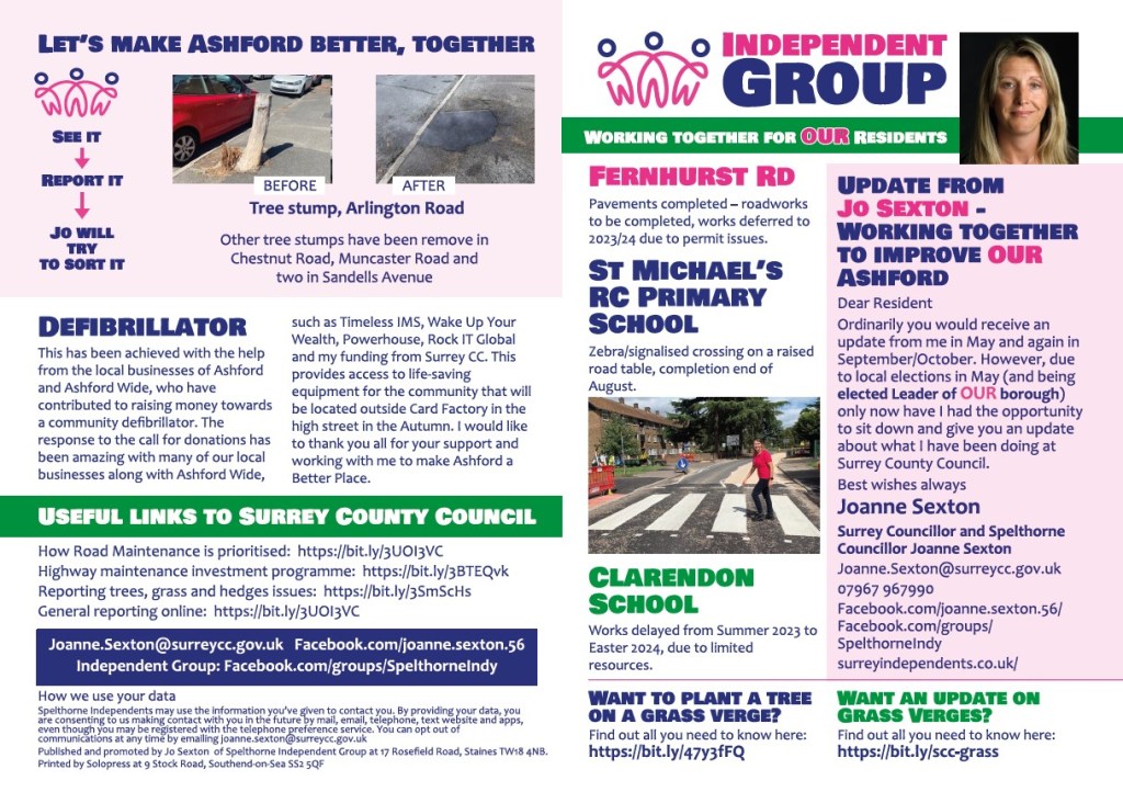 Surrey County Cllr Joanne Sexton Autumn/Winter 2023 update on Surrey activities that affect Ashford Division