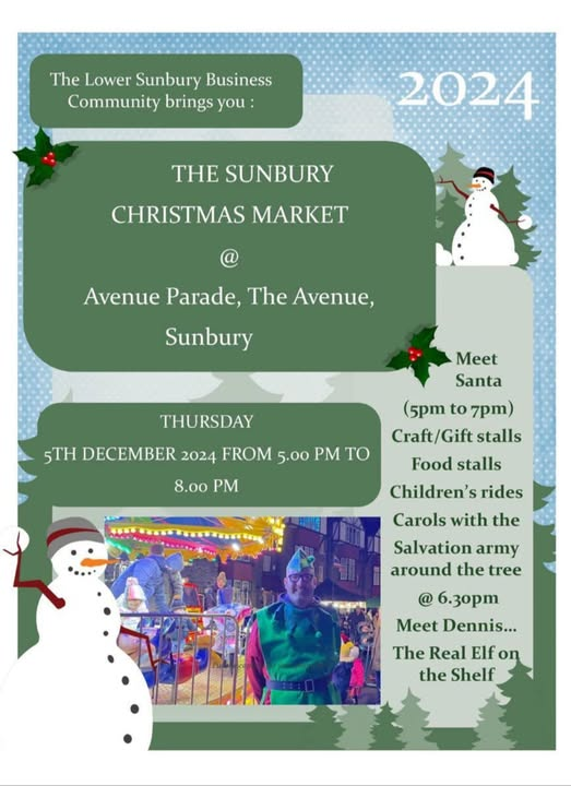 The residents of Sunbury-on-Thames are celebrating Christmas with a special event on The Avenue Parade from 5-8pm on Thursday 5 December. Come along with the family and enjoy the festive lights, gift stalls, rides, Santa’s grotto and carol singing with the Salvation Army from 6.30pm.