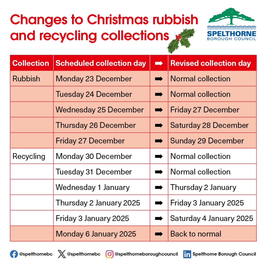 Christmas Recycling and Rubbish collection dates in Spelthorne for 2025/26