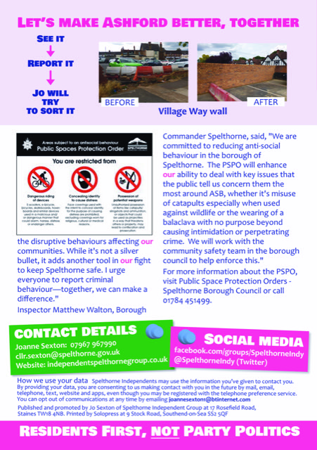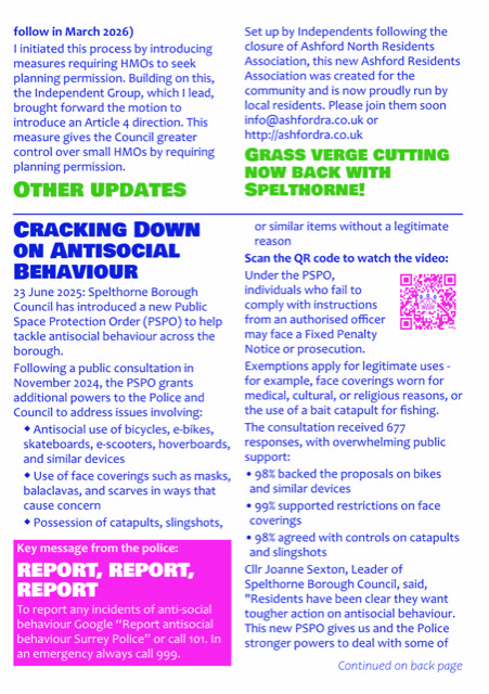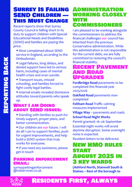 Surrey County Cllr Joanne Sexton August/September 2025 update on Surrey activities that affect Ashford Division