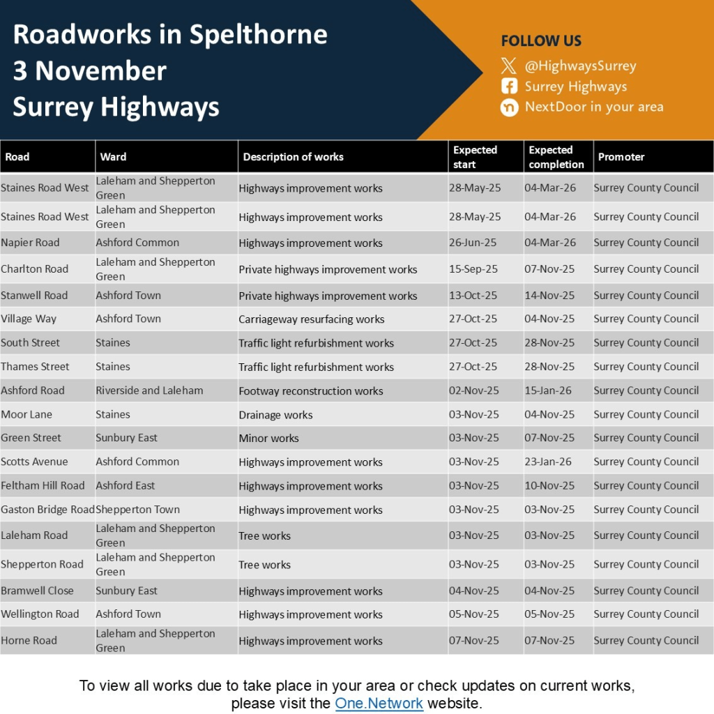 You can also find up to date details of the works on www.surreycc.gov.uk/roadworks